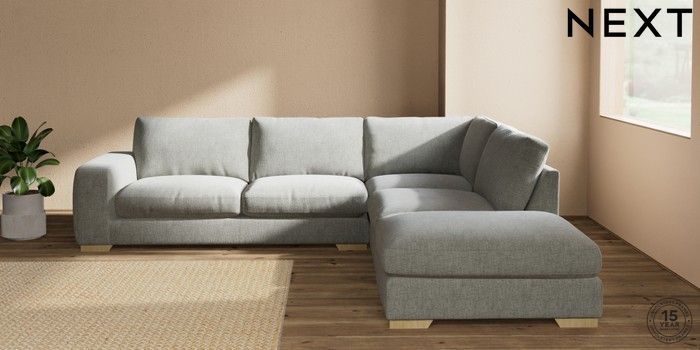 7.2.10 Houghton Deep Relaxed Sit Large Open End Corner Chaise - Right Hand Chunky Chenille Light Grey Large Square Angle - Light | Made Click here to use our website with more accessibility support, for example screen readers