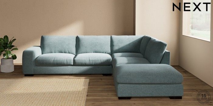 7.2.10 Houghton Deep Relaxed Sit Large Open End Corner Chaise - Right Hand Chunky Chenille Light Teal Green Large Square Angle - Dark | Made Click here to use our website with more accessibility support, for example screen readers