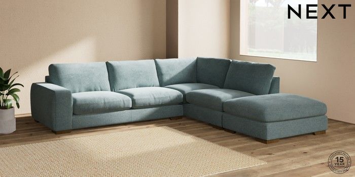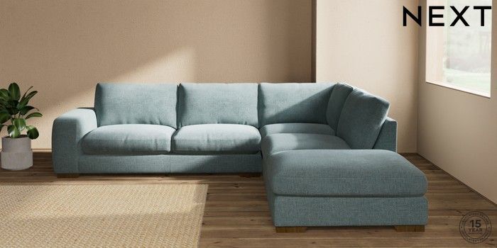 7.2.10 Houghton Deep Relaxed Sit Large Open End Corner Chaise - Right Hand Chunky Chenille Light Teal Green Large Square Angle - Mid | Made Click here to use our website with more accessibility support, for example screen readers