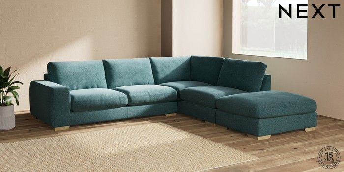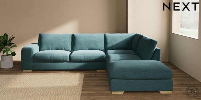 7.2.10 Houghton Deep Relaxed Sit Large Open End Corner Chaise - Right Hand Chunky Chenille Mid Teal Green Large Square Angle - Light | Made Click here to use our website with more accessibility support, for example screen readers
