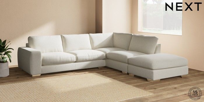 7.2.10 Houghton Deep Relaxed Sit Large Open End Corner Chaise - Right Hand Chunky Texture Oyster Large Square Angle - Chrome Metal | Made Click here to use our website with more accessibility support, for example screen readers