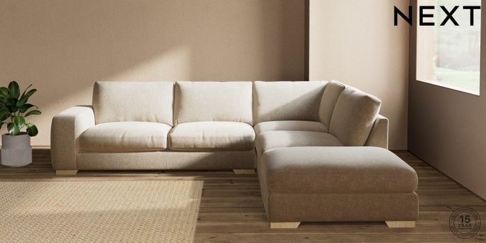 7.2.10 Houghton Deep Relaxed Sit Large Open End Corner Chaise - Right Hand Chunky Weave Cream Large Square Angle - Light | Made Click here to use our website with more accessibility support, for example screen readers