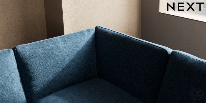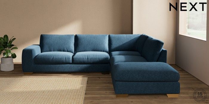 7.2.10 Houghton Deep Relaxed Sit Large Open End Corner Chaise - Right Hand Cotswold Chenille Dark Blue Large Square Angle - Brushed Brass | Made Click here to use our website with more accessibility support, for example screen readers
