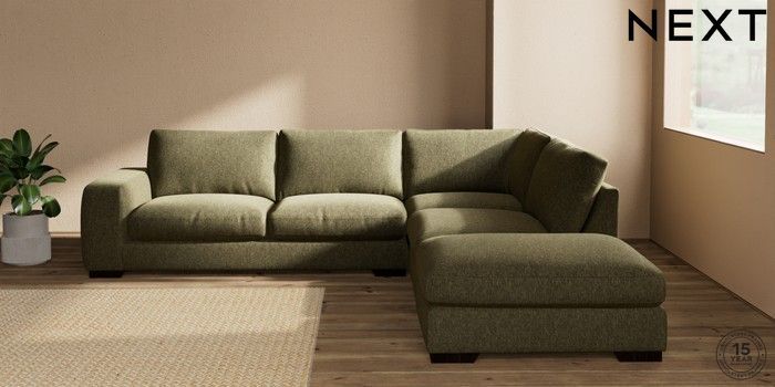 7.2.10 Houghton Deep Relaxed Sit Large Open End Corner Chaise - Right Hand Cotswold Chenille Dark Green Large Square Angle - Dark | Made Click here to use our website with more accessibility support, for example screen readers