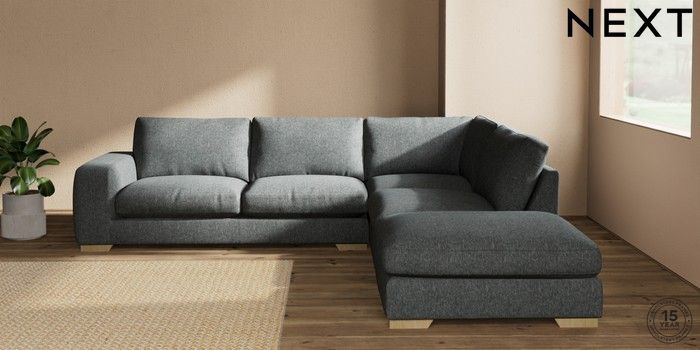 7.2.10 Houghton Deep Relaxed Sit Large Open End Corner Chaise - Right Hand Cotswold Chenille Dark Grey Large Square Angle - Light | Made Click here to use our website with more accessibility support, for example screen readers