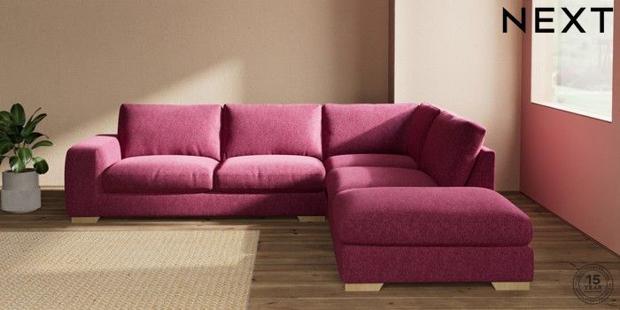 7.2.10 Houghton Deep Relaxed Sit Large Open End Corner Chaise - Right Hand Cotswold Chenille Dark Raspberry Pink Large Square Angle - Light | Made Click here to use our website with more accessibility support, for example screen readers