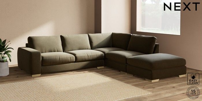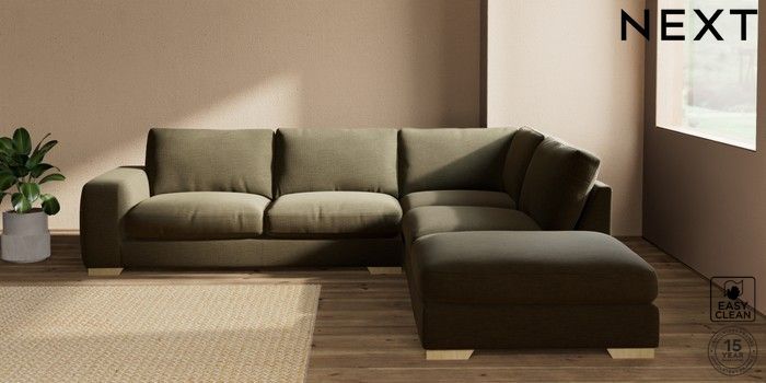 7.2.10 Houghton Deep Relaxed Sit Large Open End Corner Chaise - Right Hand Fine Chenille Easy Clean Dark Moss Green Large Square Angle - Light | Made Click here to use our website with more accessibility support, for example screen readers