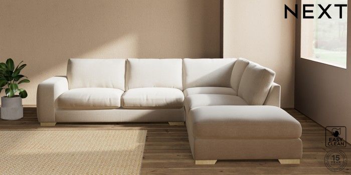 7.2.10 Houghton Deep Relaxed Sit Large Open End Corner Chaise - Right Hand Fine Chenille Easy Clean Oyster Large Square Angle - Light | Made Click here to use our website with more accessibility support, for example screen readers