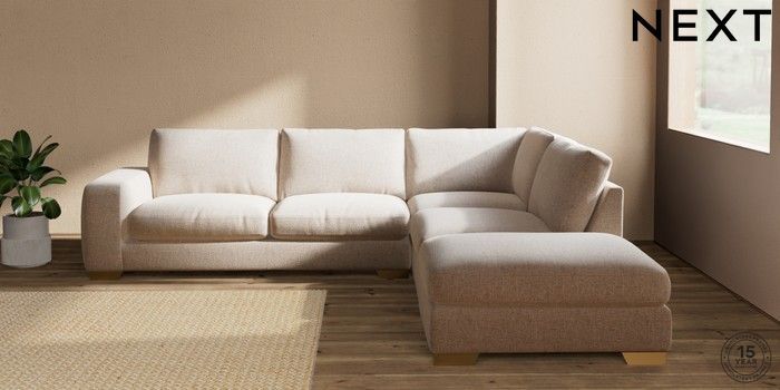 7.2.10 Houghton Deep Relaxed Sit Large Open End Corner Chaise - Right Hand Multi Weave Mid Natural Large Square Angle - Brushed Brass | Made Click here to use our website with more accessibility support, for example screen readers