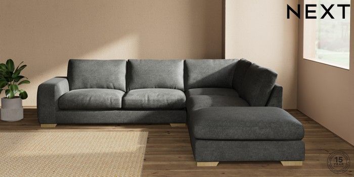 7.2.10 Houghton Deep Relaxed Sit Large Open End Corner Chaise - Right Hand Plush Chenille Dark Grey Large Square Angle - Light | Made Click here to use our website with more accessibility support, for example screen readers