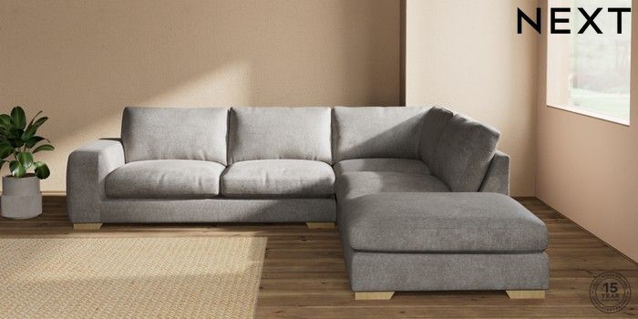 7.2.10 Houghton Deep Relaxed Sit Large Open End Corner Chaise - Right Hand Plush Chenille Light Grey Large Square Angle - Light | Made Click here to use our website with more accessibility support, for example screen readers