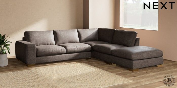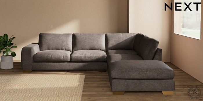 7.2.10 Houghton Deep Relaxed Sit Large Open End Corner Chaise - Right Hand Plush Chenille Mink Brown Large Square Angle - Brushed Brass | Made Click here to use our website with more accessibility support, for example screen readers