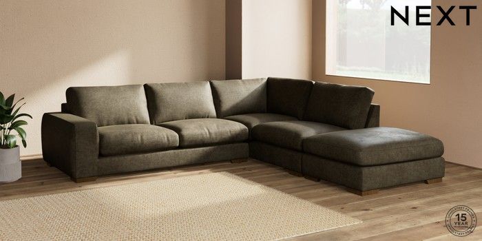 7.2.10 Houghton Deep Relaxed Sit Large Open End Corner Chaise - Right Hand Plush Chenille Moss Green Large Square Angle - Mid | Made Click here to use our website with more accessibility support, for example screen readers