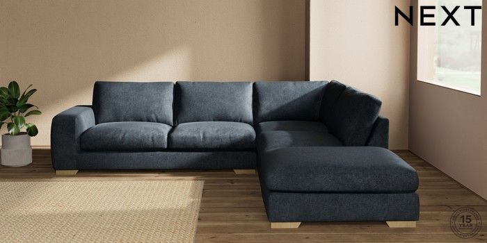 7.2.10 Houghton Deep Relaxed Sit Large Open End Corner Chaise - Right Hand Plush Chenille Slate Blue Large Square Angle - Light | Made Click here to use our website with more accessibility support, for example screen readers