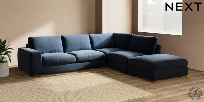 7.2.10 Houghton Deep Relaxed Sit Large Open End Corner Chaise - Right Hand Ripple Chenille Dark Blue Large Square Angle - Mid | Made Click here to use our website with more accessibility support, for example screen readers