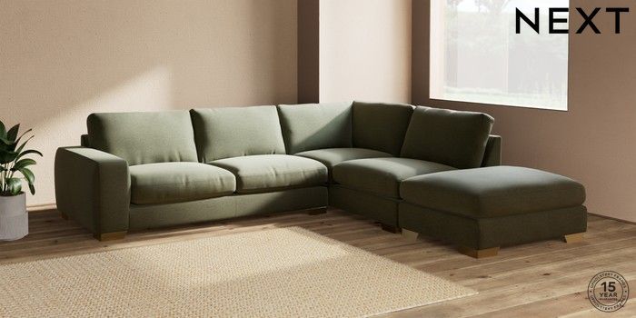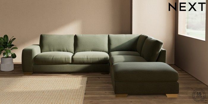 7.2.10 Houghton Deep Relaxed Sit Large Open End Corner Chaise - Right Hand Ripple Chenille Mid Moss Green Large Square Angle - Brushed Brass | Made Click here to use our website with more accessibility support, for example screen readers