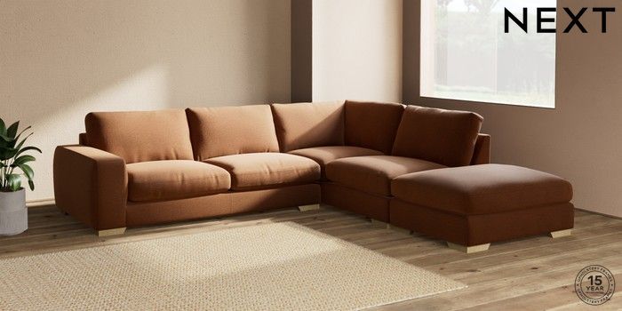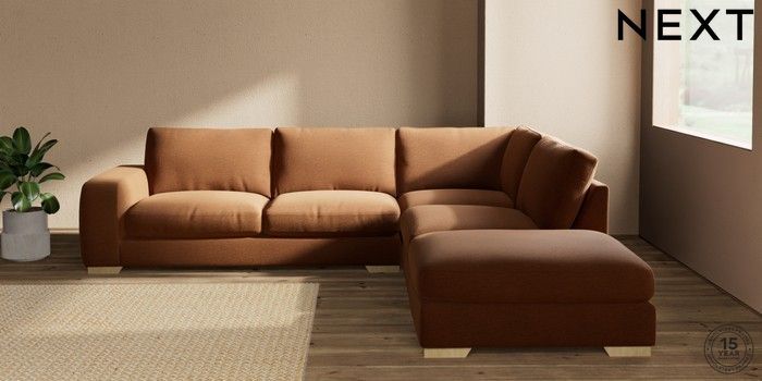 7.2.10 Houghton Deep Relaxed Sit Large Open End Corner Chaise - Right Hand Ripple Chenille Mid Rust Brown Large Square Angle - Light | Made Click here to use our website with more accessibility support, for example screen readers