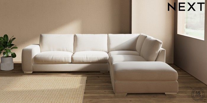7.2.10 Houghton Deep Relaxed Sit Large Open End Corner Chaise - Right Hand Studio Chenille Oyster Large Square Angle - Chrome Metal | Made Click here to use our website with more accessibility support, for example screen readers