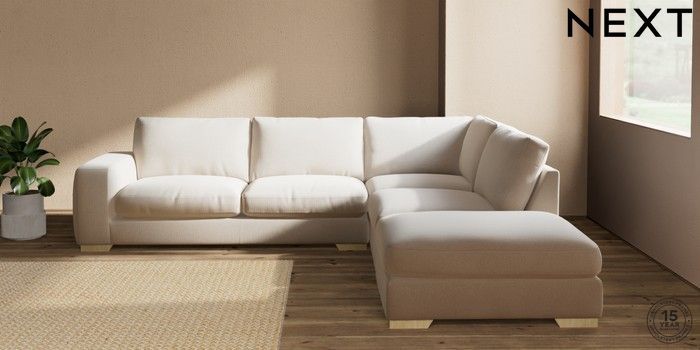 7.2.10 Houghton Deep Relaxed Sit Large Open End Corner Chaise - Right Hand Studio Chenille Oyster Large Square Angle - Light | Made Click here to use our website with more accessibility support, for example screen readers