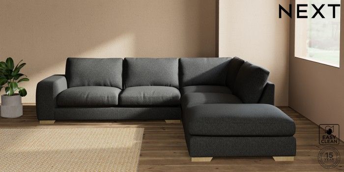 7.2.10 Houghton Deep Relaxed Sit Large Open End Corner Chaise - Right Hand Tweedy Blend Easy Clean Charcoal Grey Large Square Angle - Light | Made Click here to use our website with more accessibility support, for example screen readers
