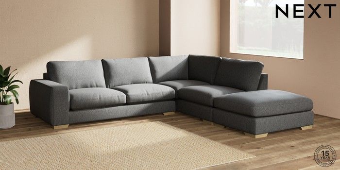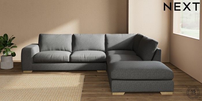 7.2.10 Houghton Deep Relaxed Sit Large Open End Corner Chaise - Right Hand Tweedy Chenille Dark Grey Large Square Angle - Light | Made Click here to use our website with more accessibility support, for example screen readers