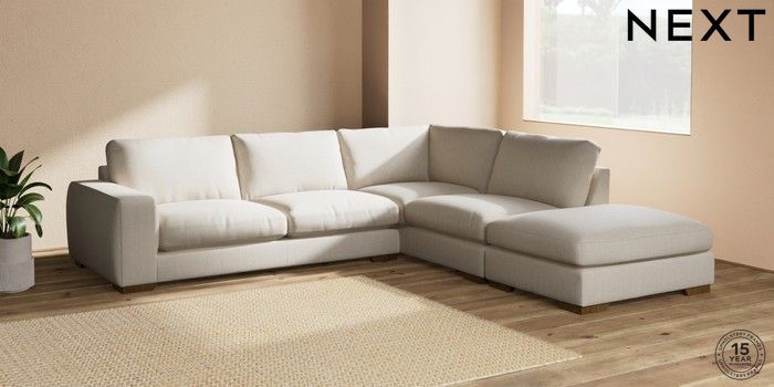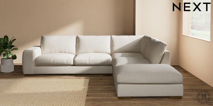 7.2.10 Houghton Deep Relaxed Sit Large Open End Corner Chaise - Right Hand Tweedy Chenille Oyster Large Square Angle - Mid | Made Click here to use our website with more accessibility support, for example screen readers