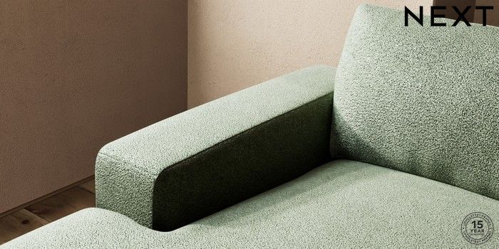 7.2.10 Houghton Deep Relaxed Sit Large Sofa Chaise - Left Hand Boucle Chenille Dark Moss Green Large Square Angle - Brushed Brass | Made Click here to use our website with more accessibility support, for example screen readers