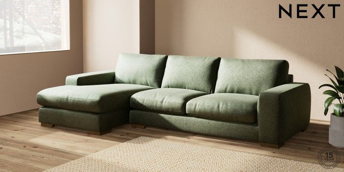 7.2.10 Houghton Deep Relaxed Sit Large Sofa Chaise - Left Hand Boucle Chenille Dark Moss Green Large Square Angle - Mid | Made Click here to use our website with more accessibility support, for example screen readers