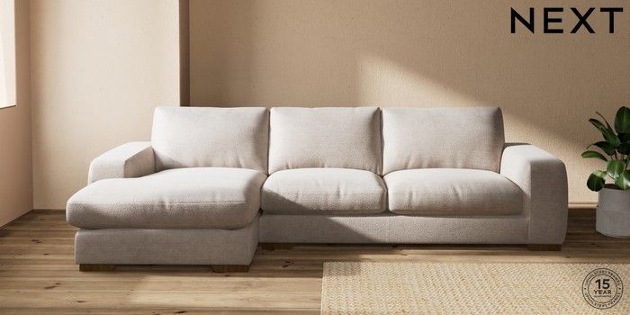 7.2.10 Houghton Deep Relaxed Sit Large Sofa Chaise - Left Hand Boucle Chenille Light Natural Large Square Angle - Mid | Made Click here to use our website with more accessibility support, for example screen readers