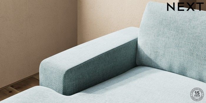 7.2.10 Houghton Deep Relaxed Sit Large Sofa Chaise - Left Hand Chunky Chenille Light Teal Green Large Square Angle - Chrome Metal | Made Click here to use our website with more accessibility support, for example screen readers