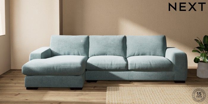 7.2.10 Houghton Deep Relaxed Sit Large Sofa Chaise - Left Hand Chunky Chenille Light Teal Green Large Square Angle - Dark | Made Click here to use our website with more accessibility support, for example screen readers