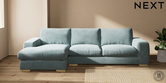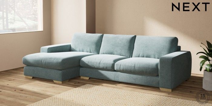 7.2.10 Houghton Deep Relaxed Sit Large Sofa Chaise - Left Hand Chunky Chenille Light Teal Green Large Square Angle - Light | Made Click here to use our website with more accessibility support, for example screen readers