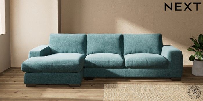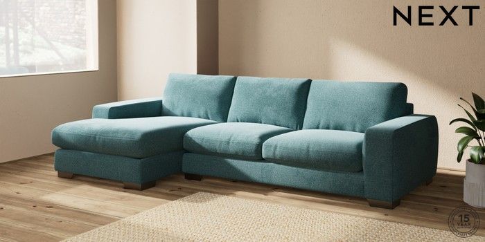 7.2.10 Houghton Deep Relaxed Sit Large Sofa Chaise - Left Hand Chunky Chenille Mid Teal Green Large Square Angle - Gunmetal | Made Click here to use our website with more accessibility support, for example screen readers
