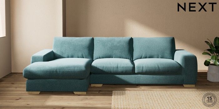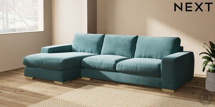 7.2.10 Houghton Deep Relaxed Sit Large Sofa Chaise - Left Hand Chunky Chenille Mid Teal Green Large Square Angle - Light | Made Click here to use our website with more accessibility support, for example screen readers