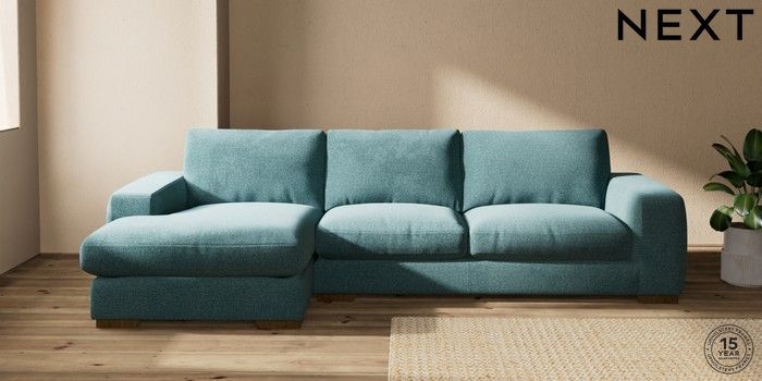 7.2.10 Houghton Deep Relaxed Sit Large Sofa Chaise - Left Hand Chunky Chenille Mid Teal Green Large Square Angle - Mid | Made Click here to use our website with more accessibility support, for example screen readers