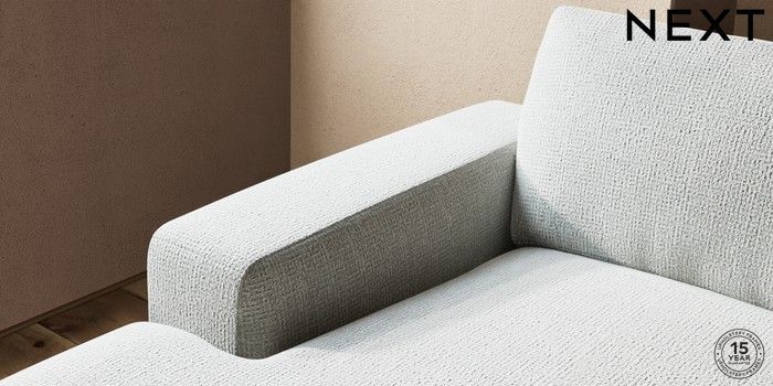 7.2.10 Houghton Deep Relaxed Sit Large Sofa Chaise - Left Hand Chunky Texture Dove Large Square Angle - Chrome Metal | Made Click here to use our website with more accessibility support, for example screen readers