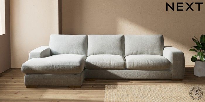 7.2.10 Houghton Deep Relaxed Sit Large Sofa Chaise - Left Hand Chunky Texture Dove Large Square Angle - Mid | Made Click here to use our website with more accessibility support, for example screen readers