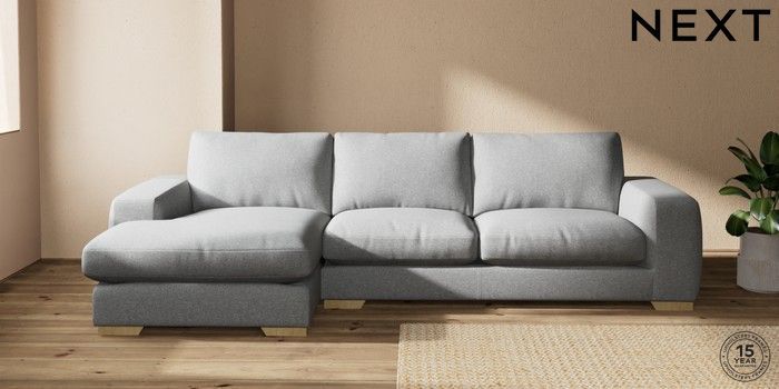 7.2.10 Houghton Deep Relaxed Sit Large Sofa Chaise - Left Hand Chunky Weave Mid Grey Large Square Angle - Light | Made Click here to use our website with more accessibility support, for example screen readers