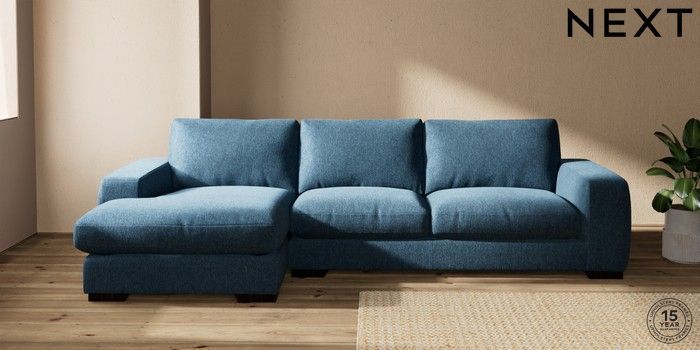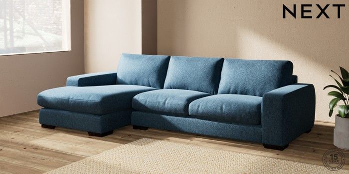7.2.10 Houghton Deep Relaxed Sit Large Sofa Chaise - Left Hand Cotswold Chenille Dark Blue Large Square Angle - Dark | Made Click here to use our website with more accessibility support, for example screen readers