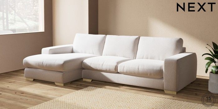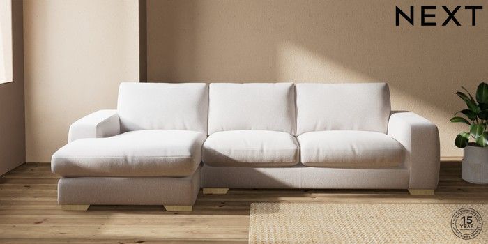 7.2.10 Houghton Deep Relaxed Sit Large Sofa Chaise - Left Hand Cotswold Chenille Oyster Large Square Angle - Light | Made Click here to use our website with more accessibility support, for example screen readers