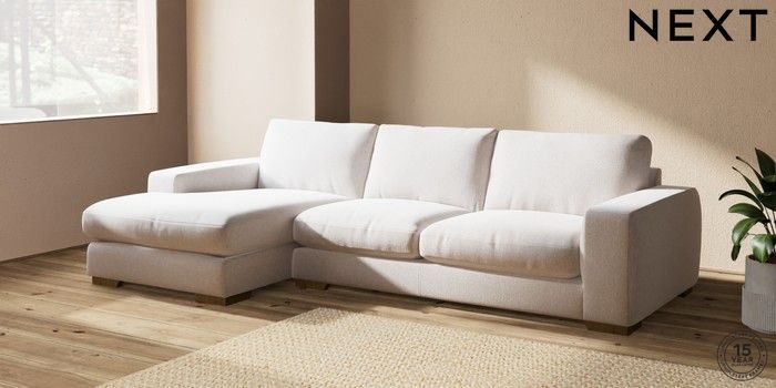 7.2.10 Houghton Deep Relaxed Sit Large Sofa Chaise - Left Hand Cotswold Chenille Oyster Large Square Angle - Mid | Made Click here to use our website with more accessibility support, for example screen readers
