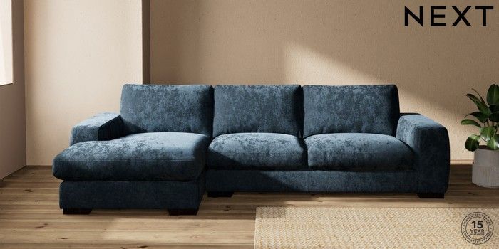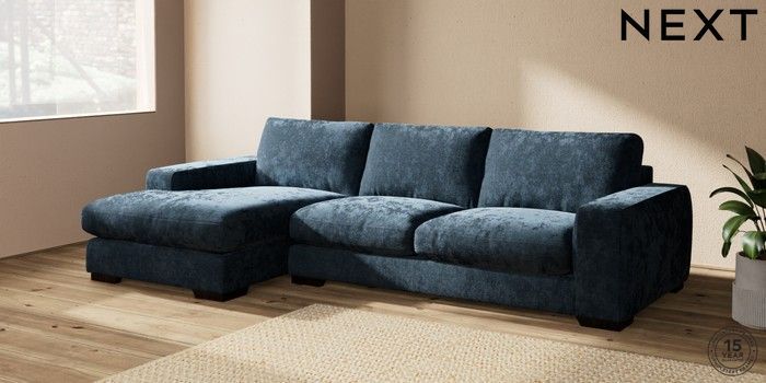 7.2.10 Houghton Deep Relaxed Sit Large Sofa Chaise - Left Hand Distressed Velour Midnight Blue Large Square Angle - Dark | Made Click here to use our website with more accessibility support, for example screen readers