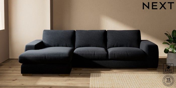 7.2.10 Houghton Deep Relaxed Sit Large Sofa Chaise - Left Hand Fine Chenille Easy Clean Black Large Square Angle - Mid | Made Click here to use our website with more accessibility support, for example screen readers
