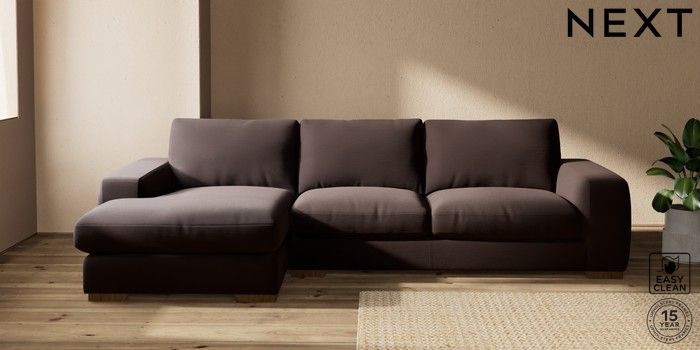 7.2.10 Houghton Deep Relaxed Sit Large Sofa Chaise - Left Hand Fine Chenille Easy Clean Chocolate Brown Large Square Angle - Mid | Made Click here to use our website with more accessibility support, for example screen readers