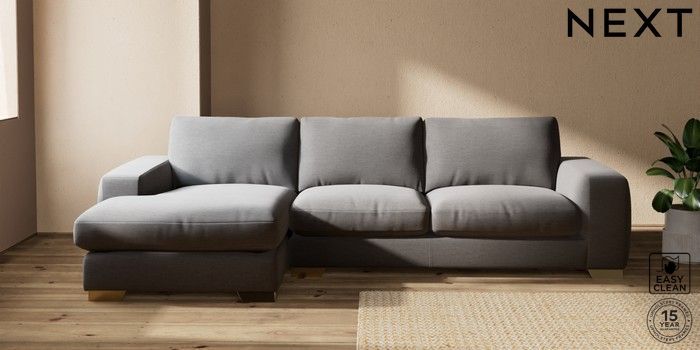 7.2.10 Houghton Deep Relaxed Sit Large Sofa Chaise - Left Hand Fine Chenille Easy Clean Dark Smoke Grey Large Square Angle - Brushed Brass | Made Click here to use our website with more accessibility support, for example screen readers