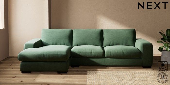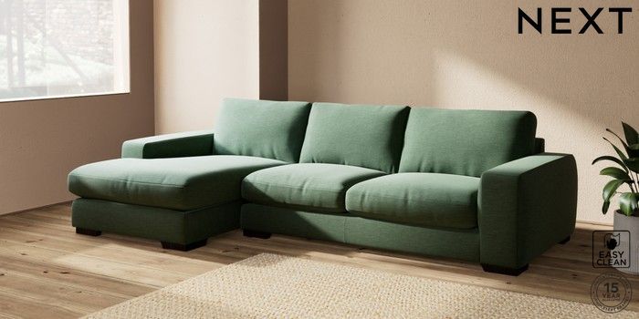 7.2.10 Houghton Deep Relaxed Sit Large Sofa Chaise - Left Hand Fine Chenille Easy Clean Mid Khaki Green Large Square Angle - Dark | Made Click here to use our website with more accessibility support, for example screen readers