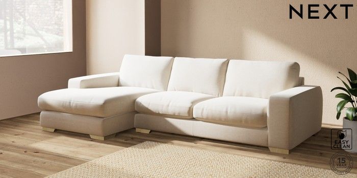 7.2.10 Houghton Deep Relaxed Sit Large Sofa Chaise - Left Hand Fine Chenille Easy Clean Oyster Large Square Angle - Light | Made Click here to use our website with more accessibility support, for example screen readers