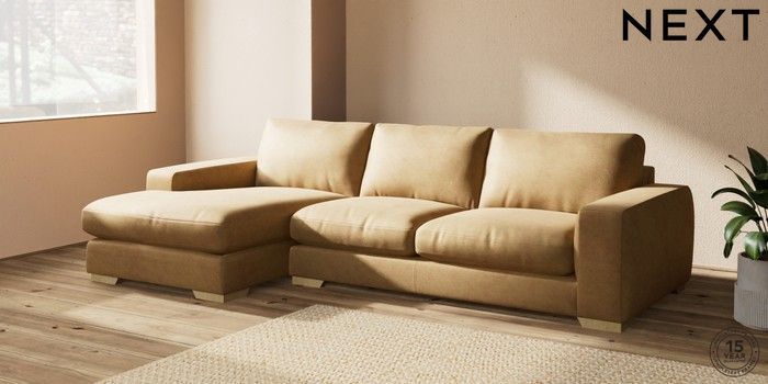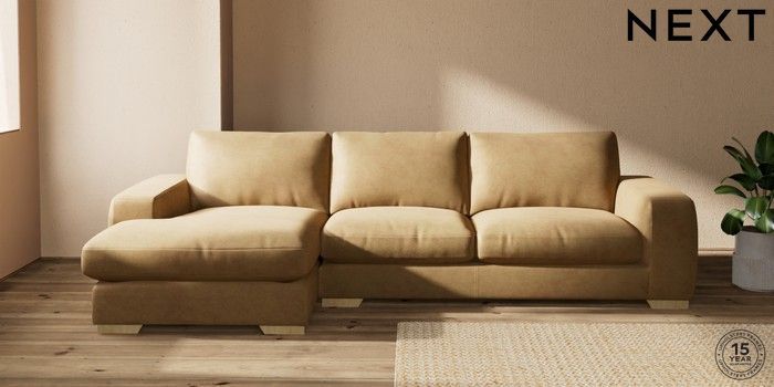 7.2.10 Houghton Deep Relaxed Sit Large Sofa Chaise - Left Hand Luxe Chenille Honey Yellow Large Square Angle - Light | Made Click here to use our website with more accessibility support, for example screen readers