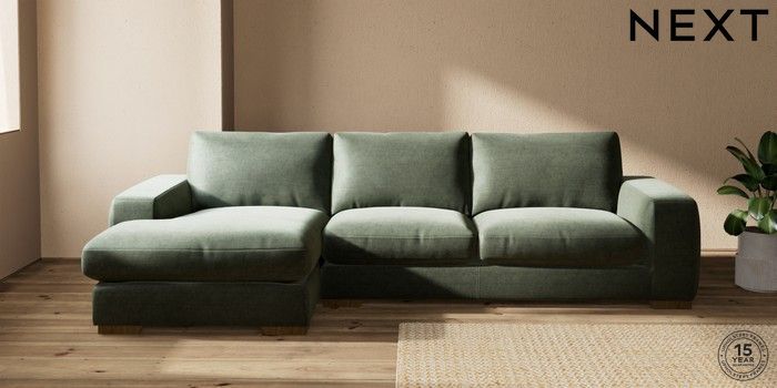 7.2.10 Houghton Deep Relaxed Sit Large Sofa Chaise - Left Hand Luxe Chenille Mid Green Large Square Angle - Mid | Made Click here to use our website with more accessibility support, for example screen readers