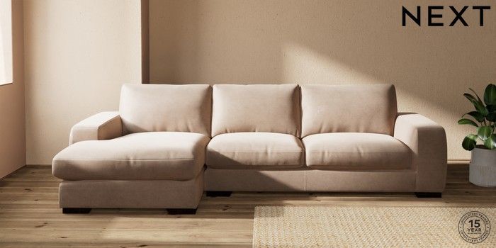 7.2.10 Houghton Deep Relaxed Sit Large Sofa Chaise - Left Hand Luxe Chenille Mid Natural Large Square Angle - Dark | Made Click here to use our website with more accessibility support, for example screen readers